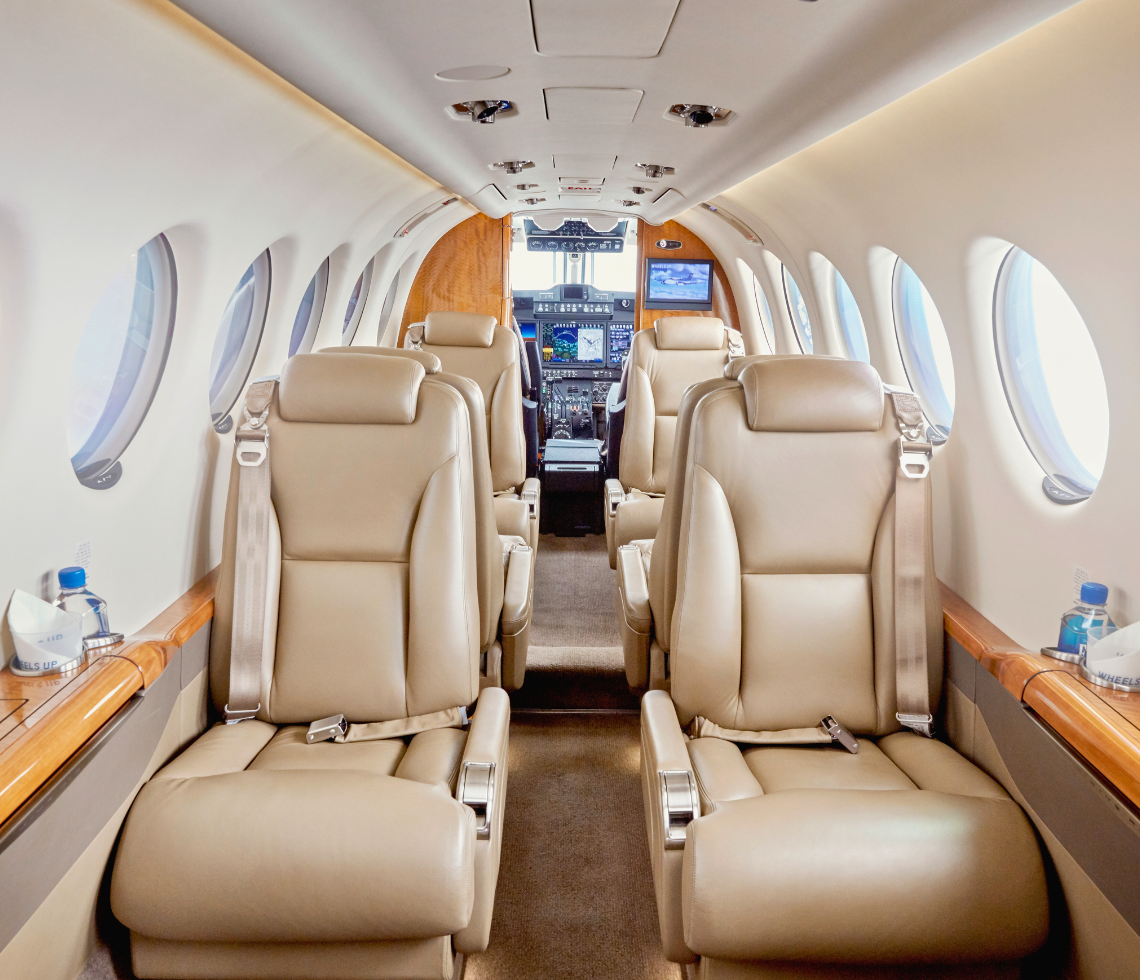 The Beechcraft King Air 350i is a versatile and popular twin-turboprop aircraft within the King Air series. It is well-known for its exceptional operating performance, reliability, and comfort. This aircraft features a pressurized cabin, impressive speed, and substantial range, making it an ideal choice for private flights. The King Air 350i is well-suited for short to medium trips, typically lasting between 30 minutes and 2 hours, especially to destinations with smaller airports that may not be serviced by commercial airlines. It requires a minimum of 3000 feet of runway.